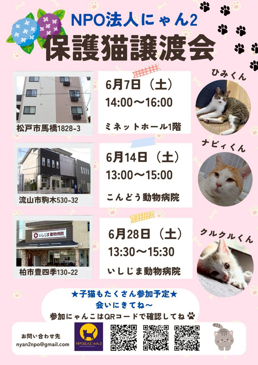 6月7日(土)NPO法人にゃん2『保護猫譲渡会』を開催いたしました。