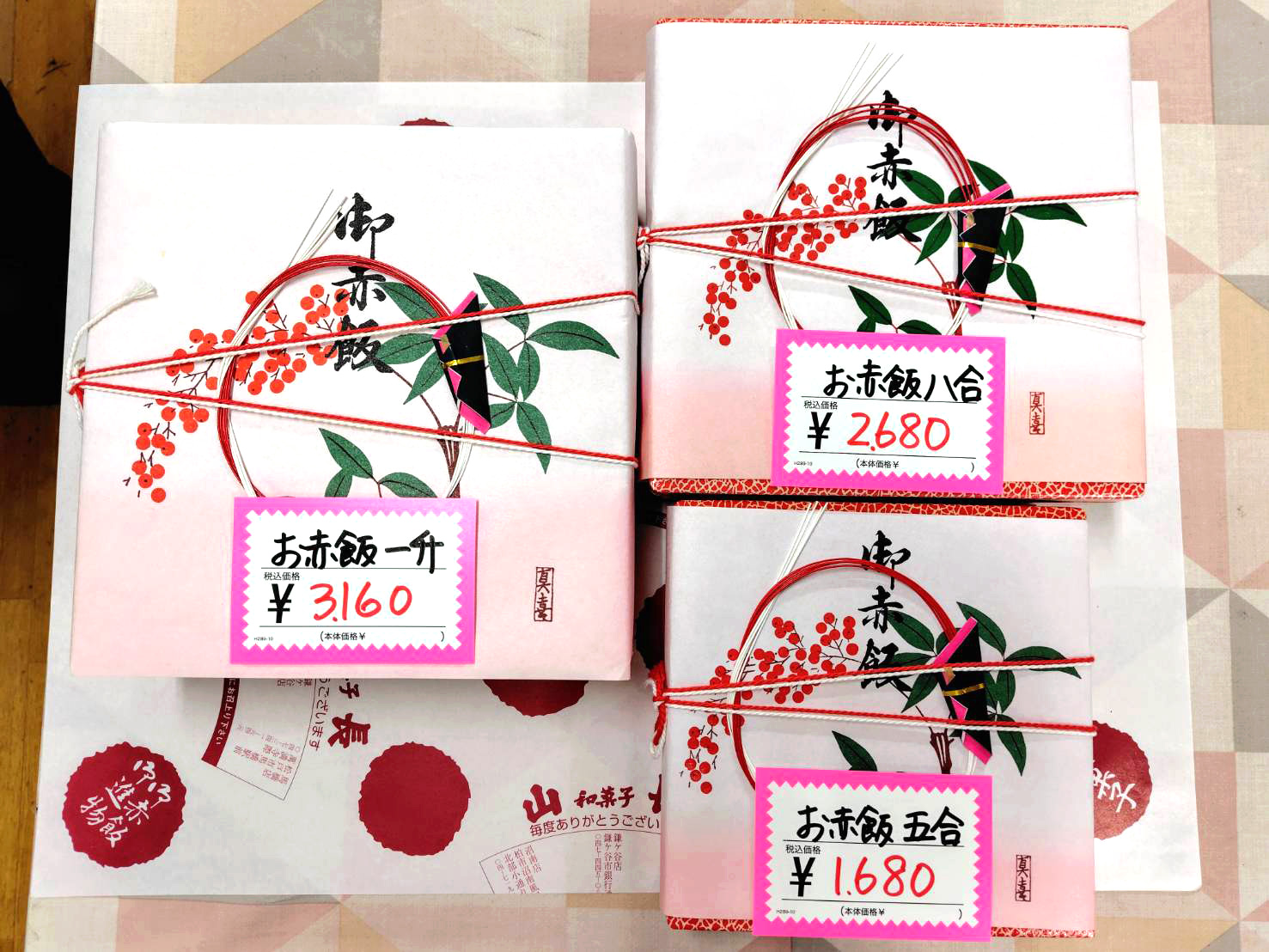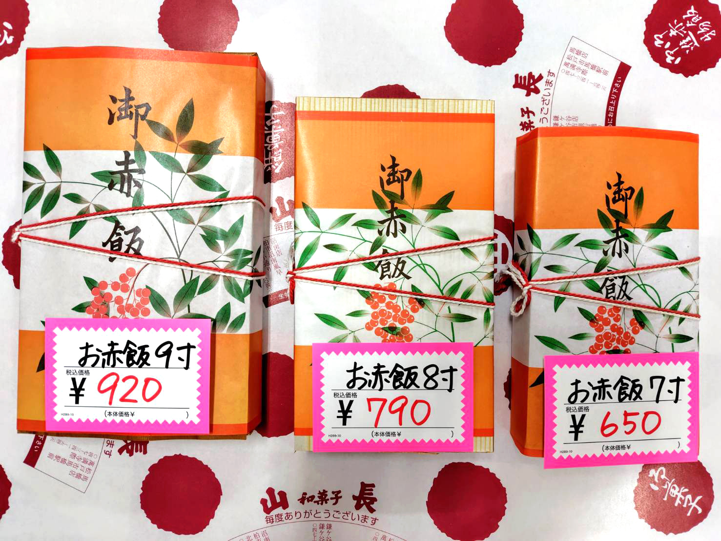 赤飯の折り詰め、慶弔用のおまんじゅう、鳥の子餅、お弁当のご注文も承ります。